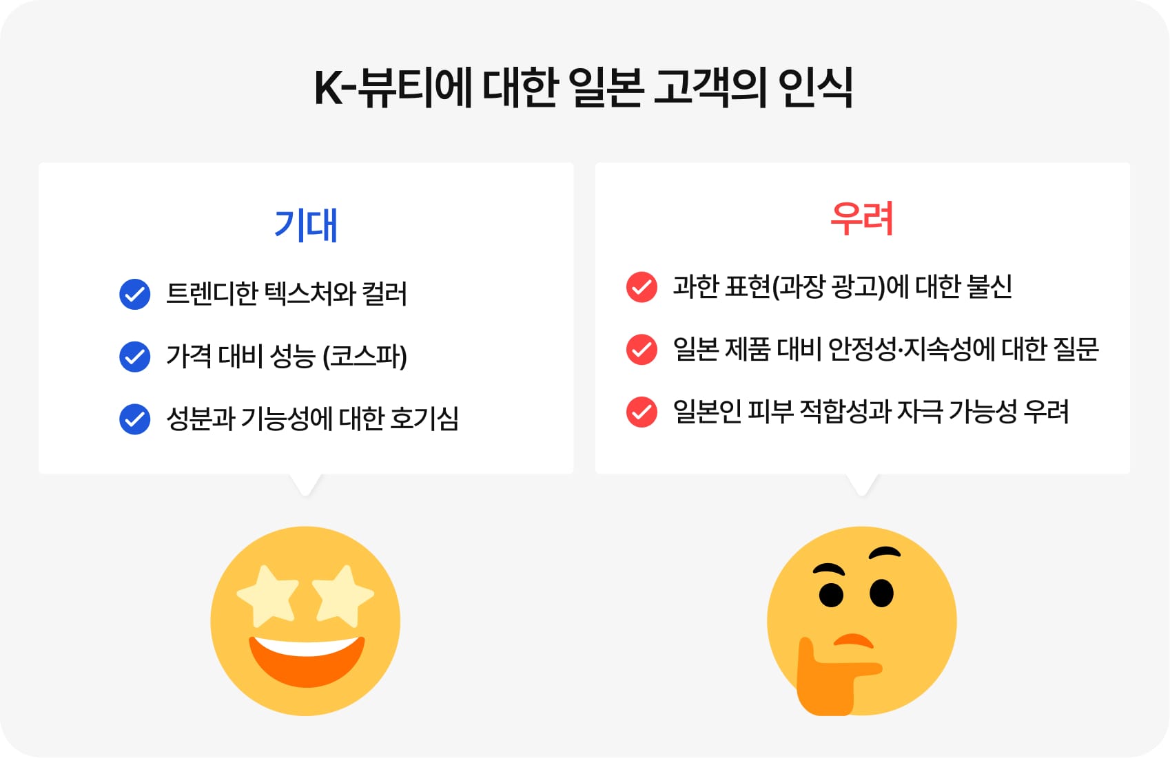 즉, “K-뷰티라서 자동으로 팔리는” 시기는 지났지만, 잘 포지셔닝한 브랜드는 여전히 선택받을 기회가 충분합니다. 한국에서 이미 검증된 제품력 + 일본 소비자 기준에 맞는 커뮤니케이션을 할 수 있느냐가 관건입니다.