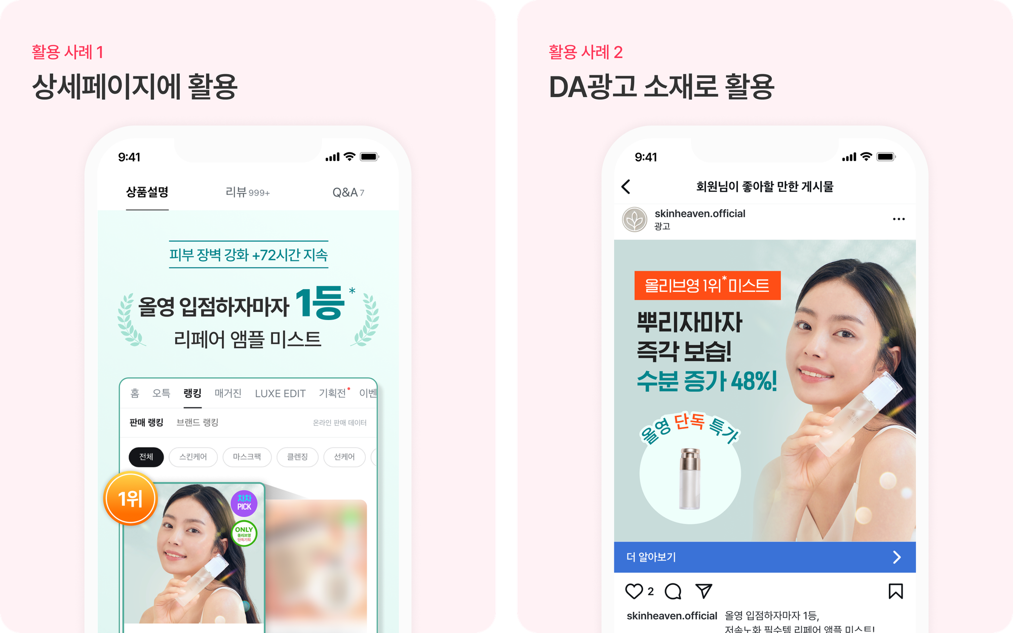 뷰티 플랫폼 1위 타이틀 활용 사례