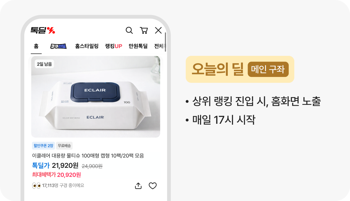 - 톡딜 서비스 내 대표 구좌 (메인 노출 영역)