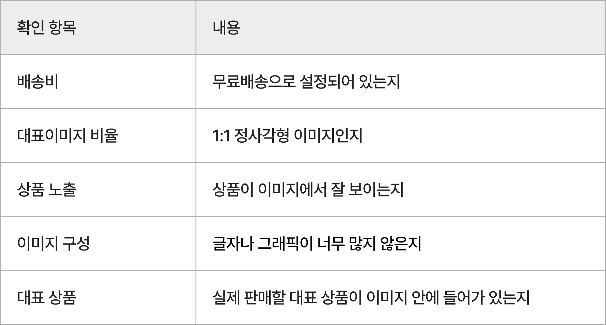 고객이 봤을 때 상품이 잘 보이고, 구매 조건이 헷갈리지 않게 보이는 상태로 준비하는 것이 좋습니다.