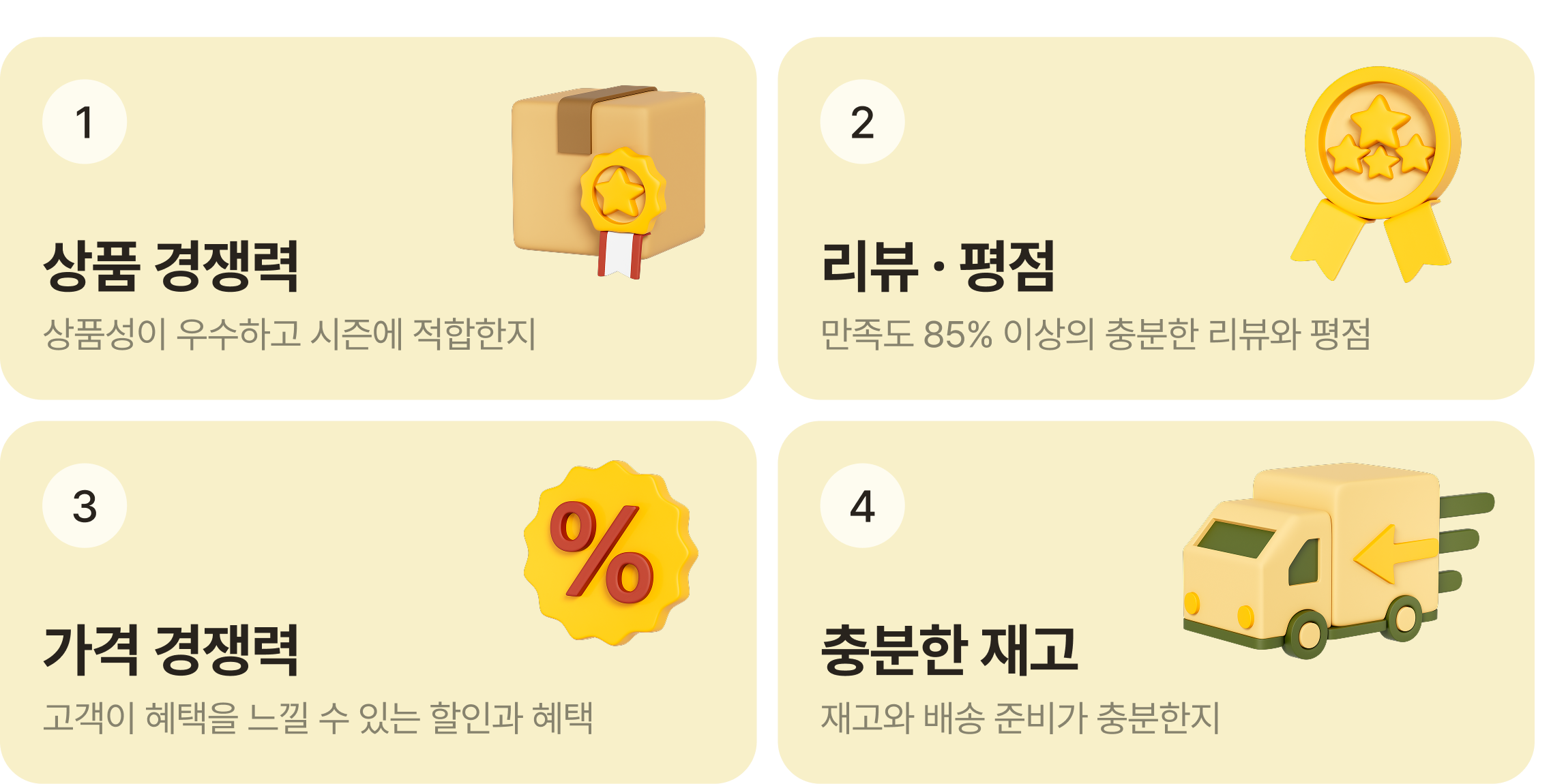 - 상품성이 우수하고 시즌에 잘 맞는 상품인지