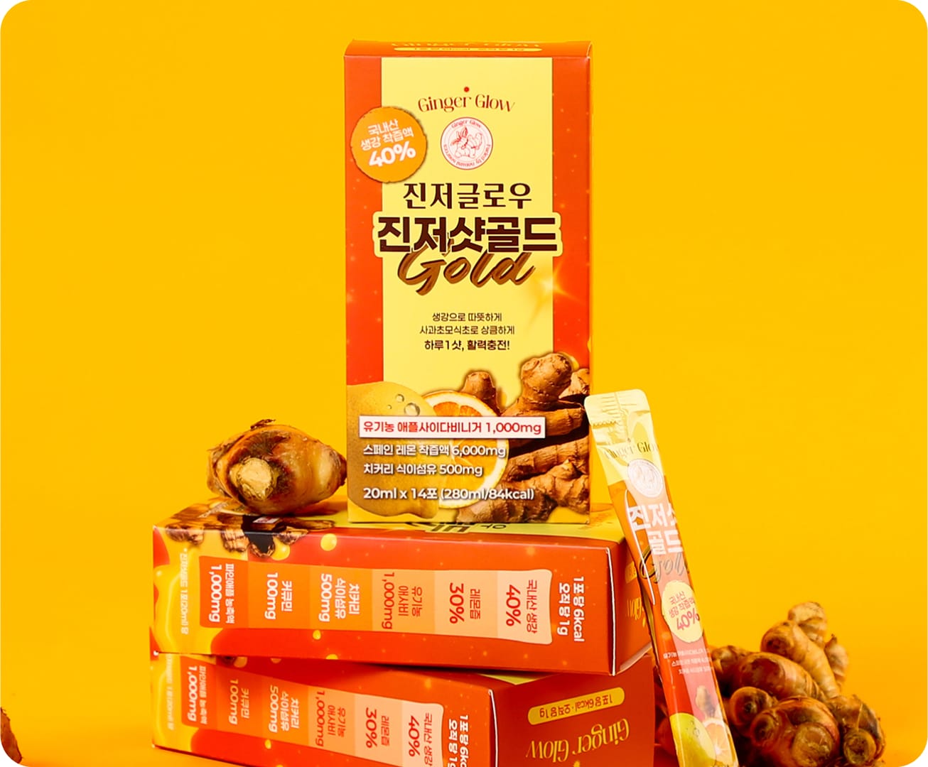 기존 생강청이나 차처럼 무겁고 불편한 형태가 아니라, 원물 생강을 바탕으로 스틱형 저당 포뮬러를 만들었어요. 건강도 챙기고 맛도 좋게, 무엇보다 들고 다니기 쉽게 만든 게 포인트예요.