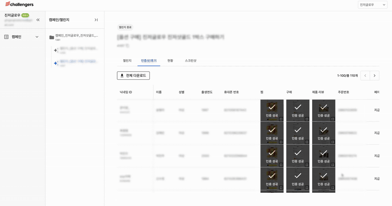 예전 회사에서는 흔히 말하는 가구매 방식의 마케팅을 했었는데, 협력사 수배부터 고객 명단 관리, 정산까지 전부 내부에서 해야 해서 리소스 소모가 정말 컸어요. 그런데 챌린저스는 실제 구매 기반의 긍정적인 고객 경험을 안정적으로 제공했고, 채널별 특징에 대한 분석력과 실무 경험이 탄탄해서 정말 믿을 수 있었어요.