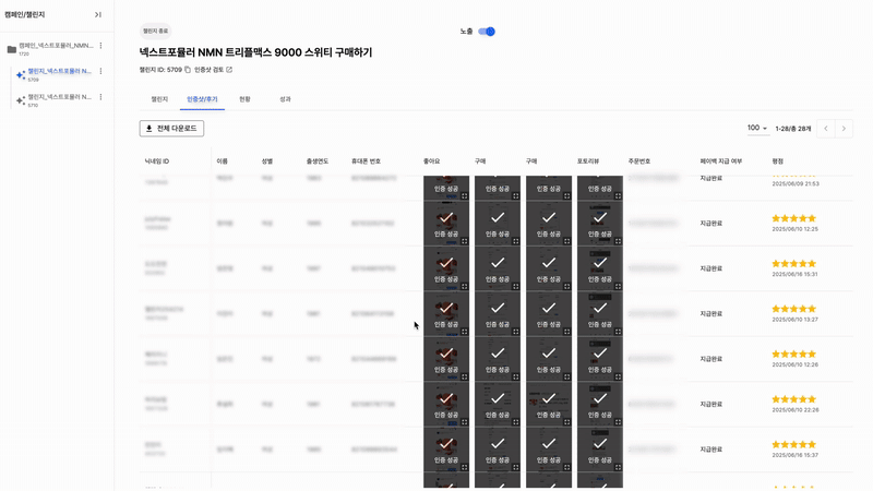 다른 플랫폼은 가구매나 체험단 중심이라 신뢰도가 낮아요. 하지만 챌린저스는 실제 구매 기반이라 리뷰 자체가 자산이 됩니다. 또한 운영팀의 빠른 대응, 전문적인 제안, 실시간 어드민 제공 등 브랜드 입장에서 ‘이 팀과 계속 함께 일하고 싶다’는 생각이 들게 했습니다.
