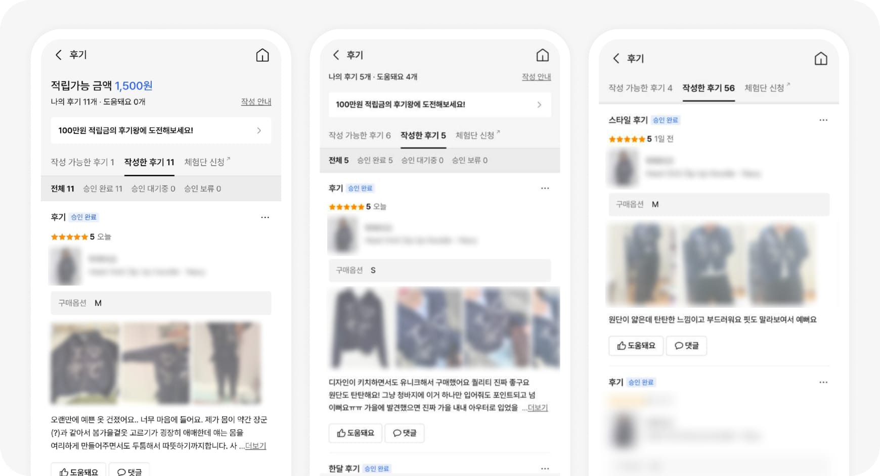 특히, 무신사는 리뷰를 쓰면 바로 노출되는 구조가 아니라 검수 과정을 거쳐 노출되다 보니, 과장된 후기보다 정보성과 신뢰도가 있는 리뷰가 더 오래, 더 안정적으로 노출되는 경향도 느꼈습니다.