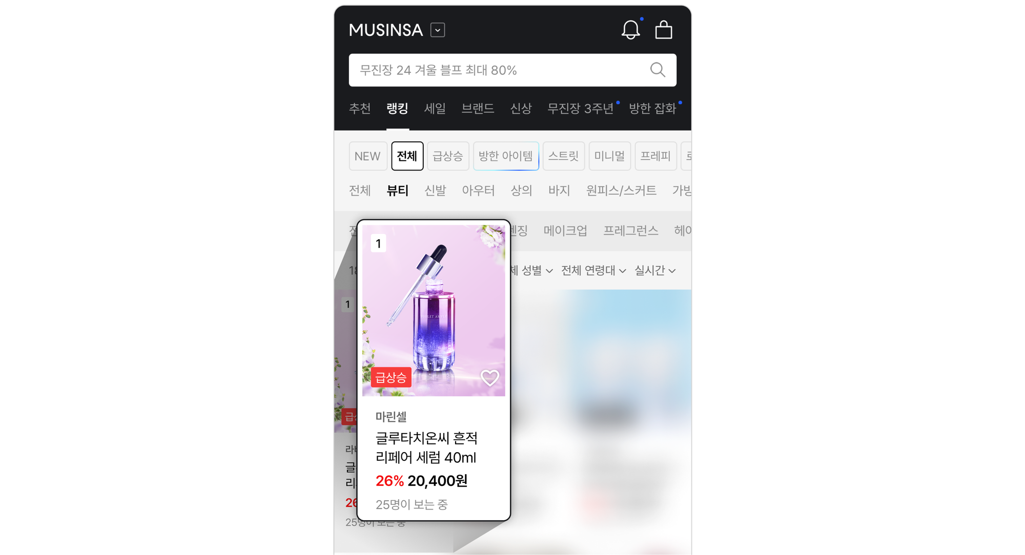무신사에서 상위 노출되면서 뷰티 어워즈까지 선정됐어요!